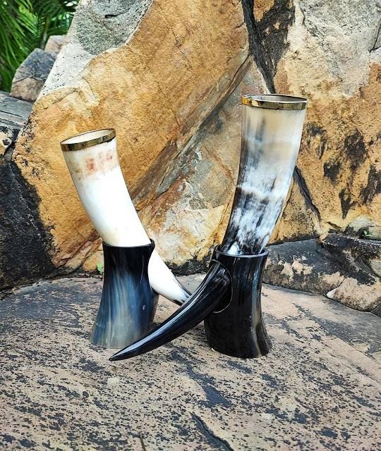 Authentic Viking Animal Style Drinking Horn Mug with Engraving and Stand for Beer Wine Mead Ale/Drinking Horn Tankard Agate