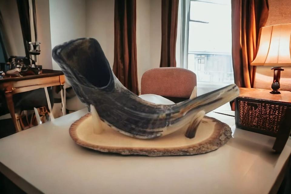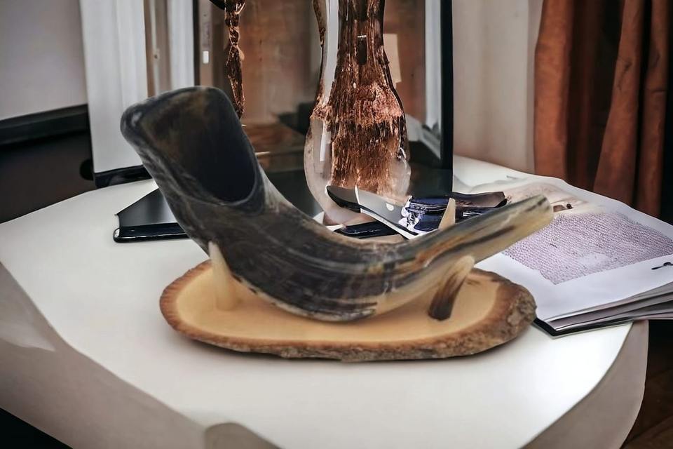 Authentic Viking Horn Sturdy Wood Stand Premium Materials for Long-Lasting Use Animal Style Home Decoration Polished Technique