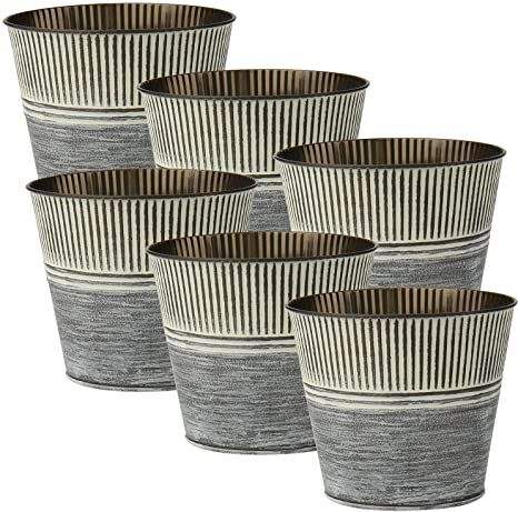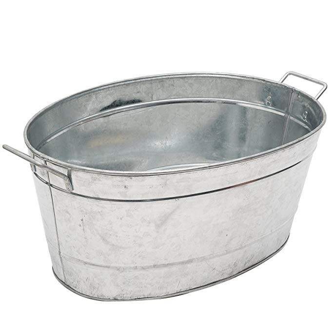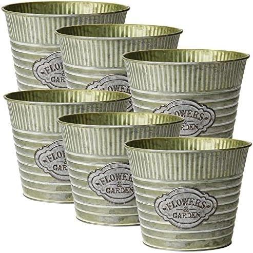 Authentic galvanized planter bucket with faded outhouse imagery for vintage gardening and classic country landscape use