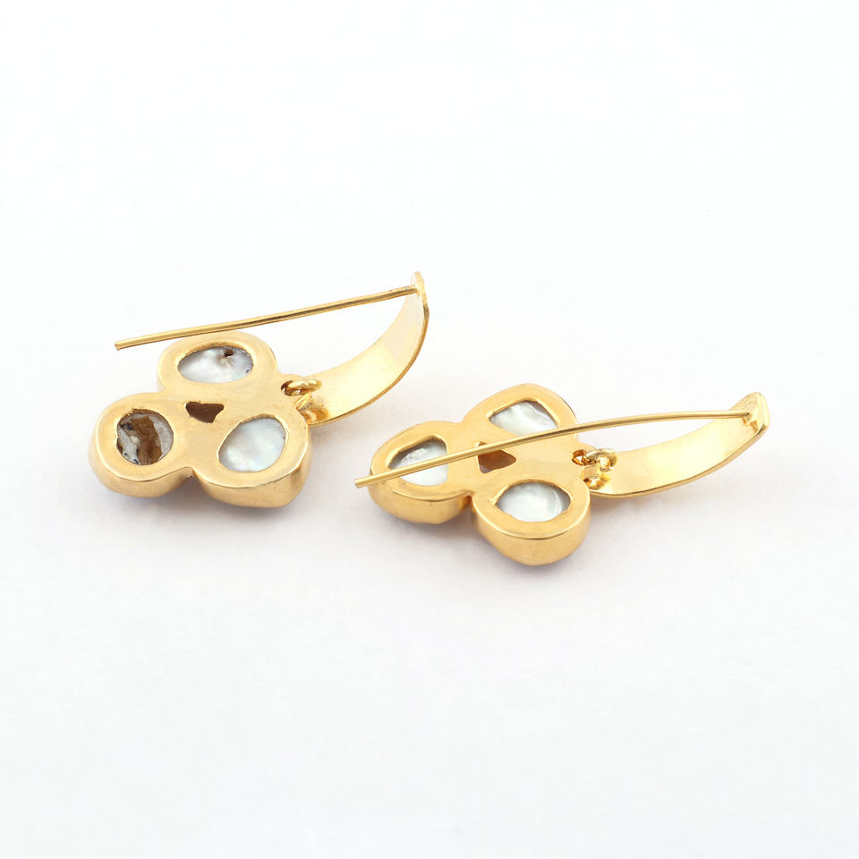 Authentic pearl drop hook earring three pearl gold plating fashion jewelry everyday wear uneven shape designer stud earrings