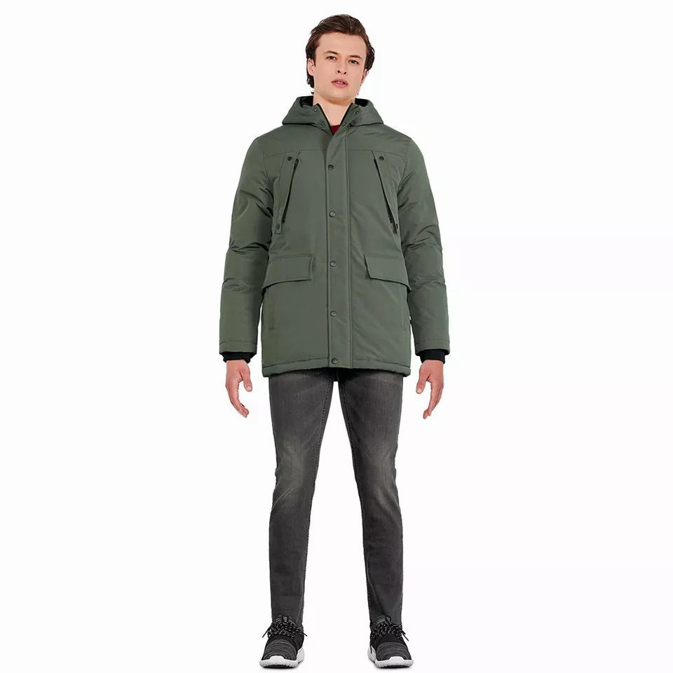 Authentic russian style parka jacket for men with faux fur lining and hood designed for extreme cold winter conditions