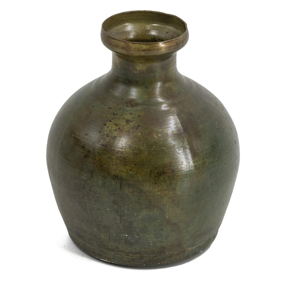 Authentic Vintage-Style Metal Flower Vase with Distressed Patina Tabletop for Adding Sophisticated Touch to Wedding Interiors