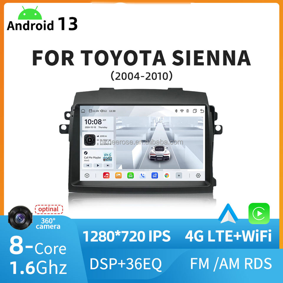 Auto Car Radio 1280*720 IPS Car-play 8 Core 1.6Ghz Android 13 4G LTE Navigator for TOYOTA SIENNA 2004-2010