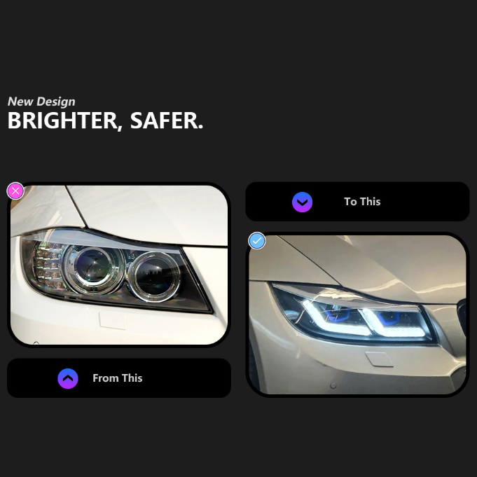 Auto Lighting Systems 12V New LED Headlights 36W 6000 lm for 3 Series E90 2005-2012 6000K DRLS