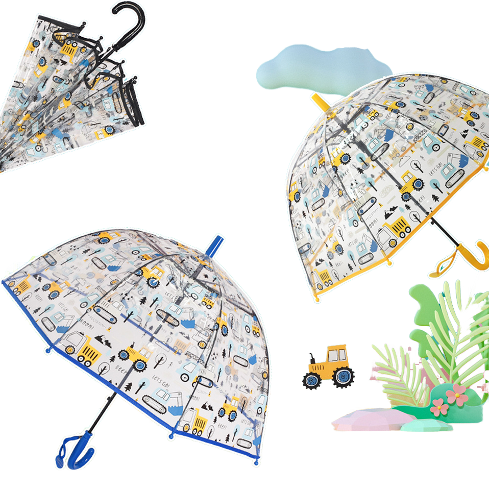 Auto Open Children's Cute Car Cartoon Design Custom Print Clear Plastic Curved Handle Safety Travel Advertising Gift Umbrella 8