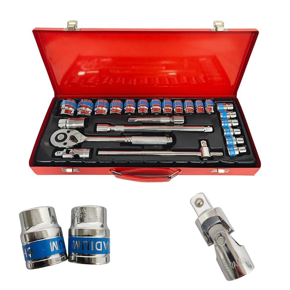 Auto Repair Tool Set 24pcs Socket Wrench Ratchet Car Repair Combo Car Repair Hardware Toolbox