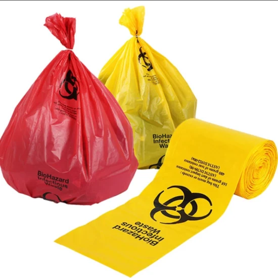 Autoclavable Medical Plastic Flat Roll Garbage Bag Side Gusset Biohazard Infectious Waste Disposal Yellow Red Black Supermarket