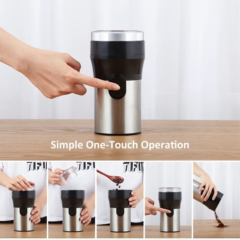 Automatic 150W Power Motor Portable Stainless Steel Coffee Grinder Timing Knob Household Mini Mill Bean Grinder
