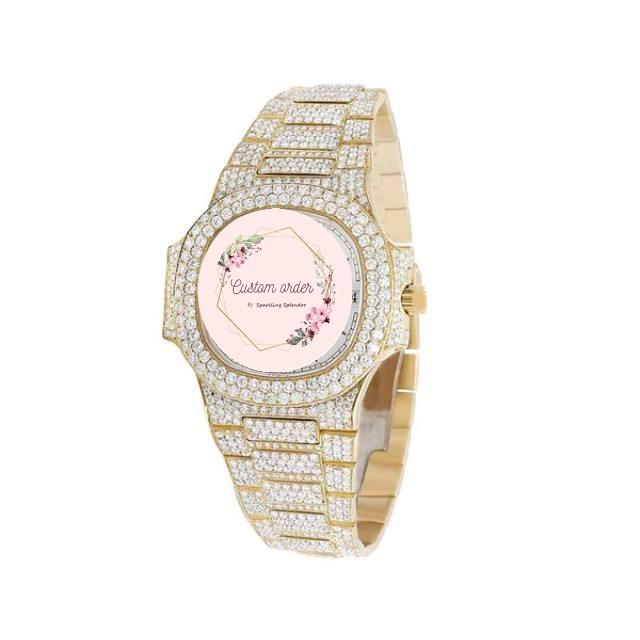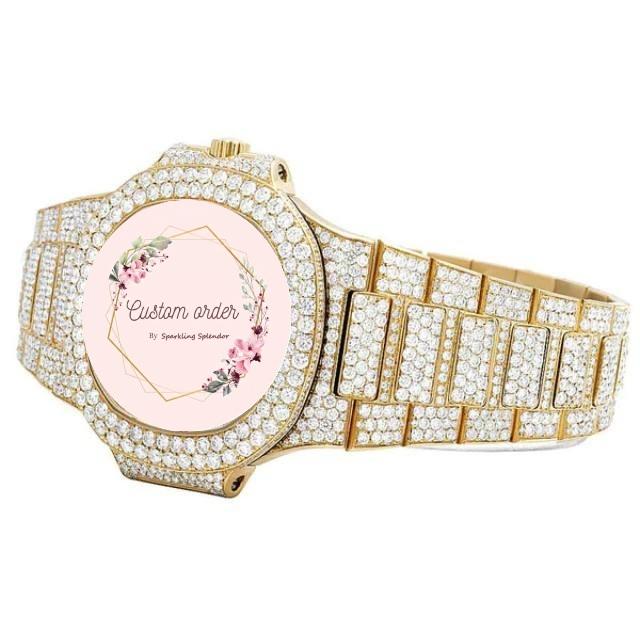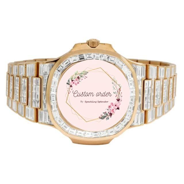 Automatic Analog Fashion Luxury Unisex Sapphire Crystal Seiko Movement Stainless Steel Yellow Rhodium Plated Customized Baguette