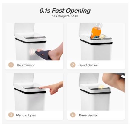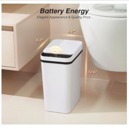 Automatic Bathroom Garbage Can With Lid 2.6 Gallon Diaper Slim Waterproof Smart Trash Can for Bedroom Bathroom Office Toilet RV