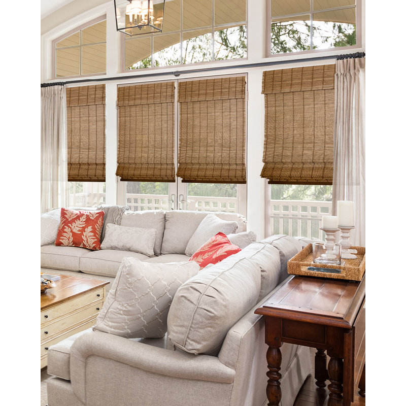 Automatic Cordless Light Filtering Bamboo Roman Shade Built-In Office Suitable Soft Blackout Features Factory Direct Supply