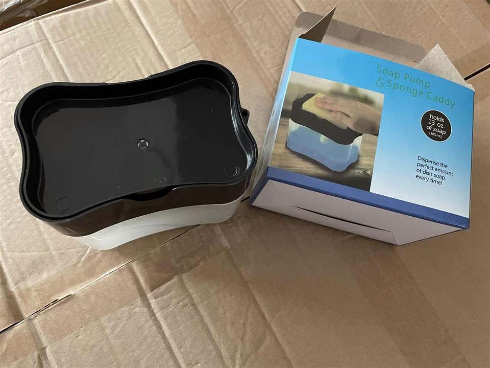 Automatic Dish Soap Dispenser with Kitchen Press Plastic Storage Bin & Box Organizer with Cleaning Sponge Ball