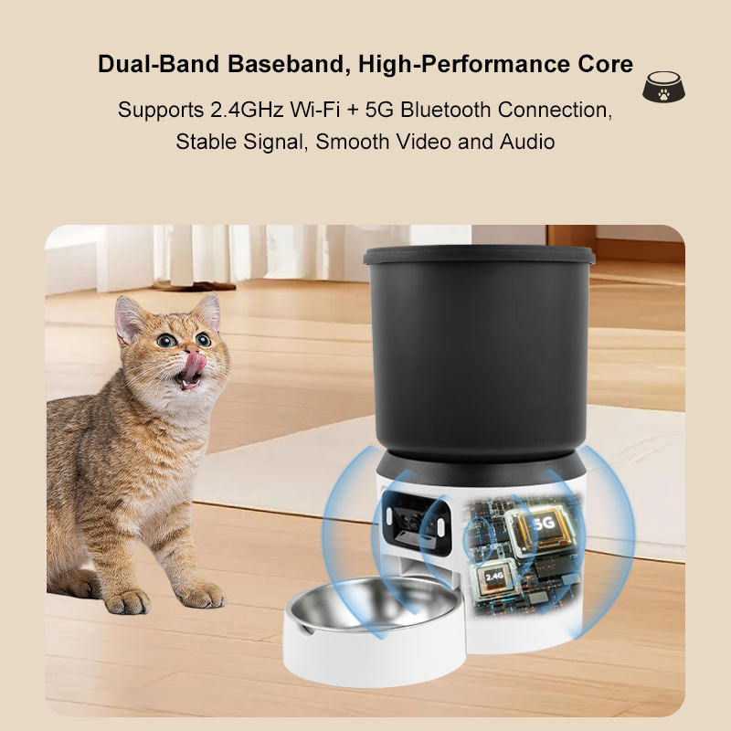 Automatic Eco-Friendly Cat Feeder Ultra-Wide-Angle Camera 2.4G WiFi 5G Bluetooth Dual Band Smart App Control Timed 4L Charge Pet