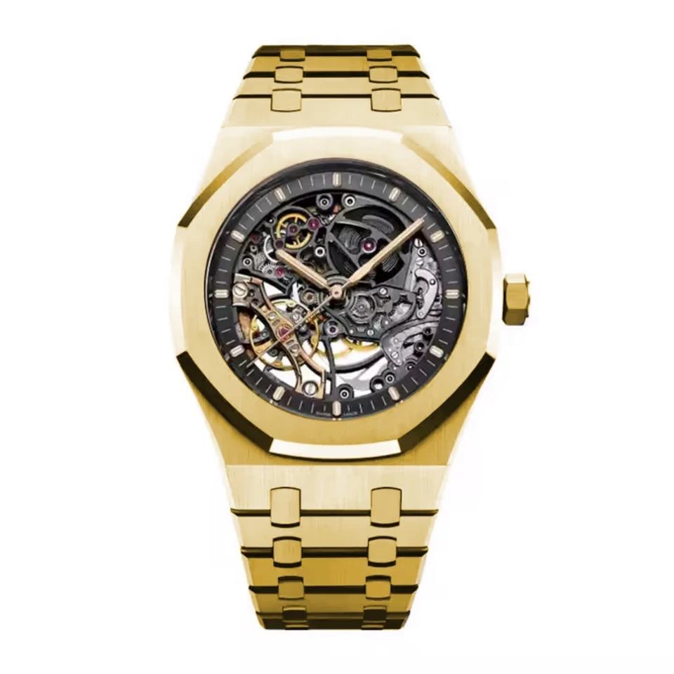 Automatic Luxury Men's Gold Stainless Steel Case Wrist Watch 42mm Chronograph Custom Logo Waterproof Mechanical Quartz Business