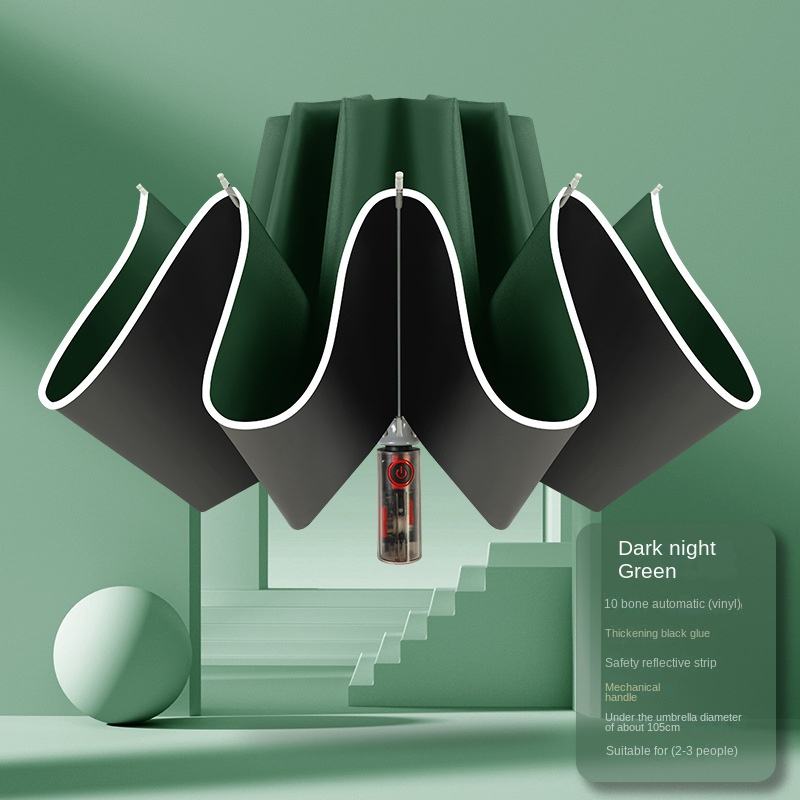 Automatic Mechanical Umbrella 10 Bone Reverse Windproof UV Protection Three-fold Men's Business Bumping Cloth Printed Umbrella