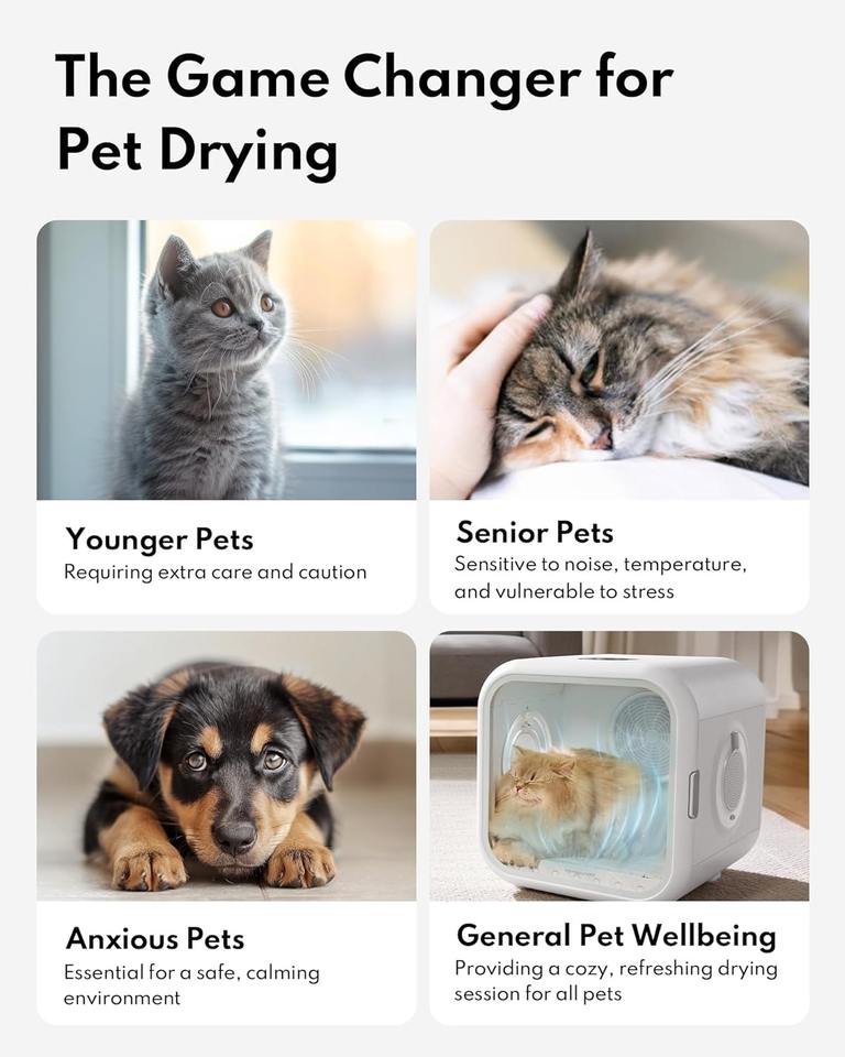 Automatic Pet Dryer All-Over Warm Air Pet Drying Box Evenly Dries Your Dog or Cat Without the Noise Stress