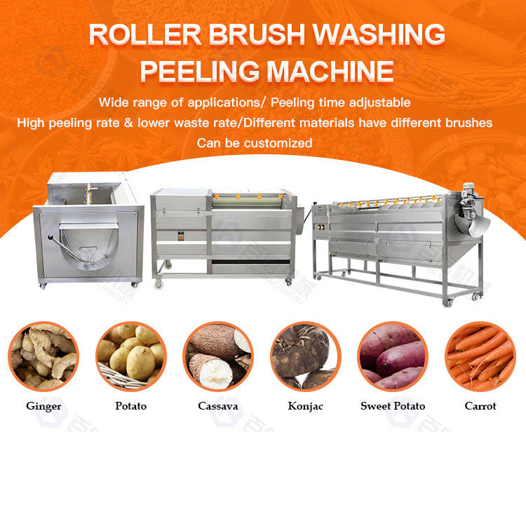 Automatic Roller Brush Cassava Potato Washing Peeling Machine Continuous Ginger Yam and Taro Cleaning and Peeling Machine