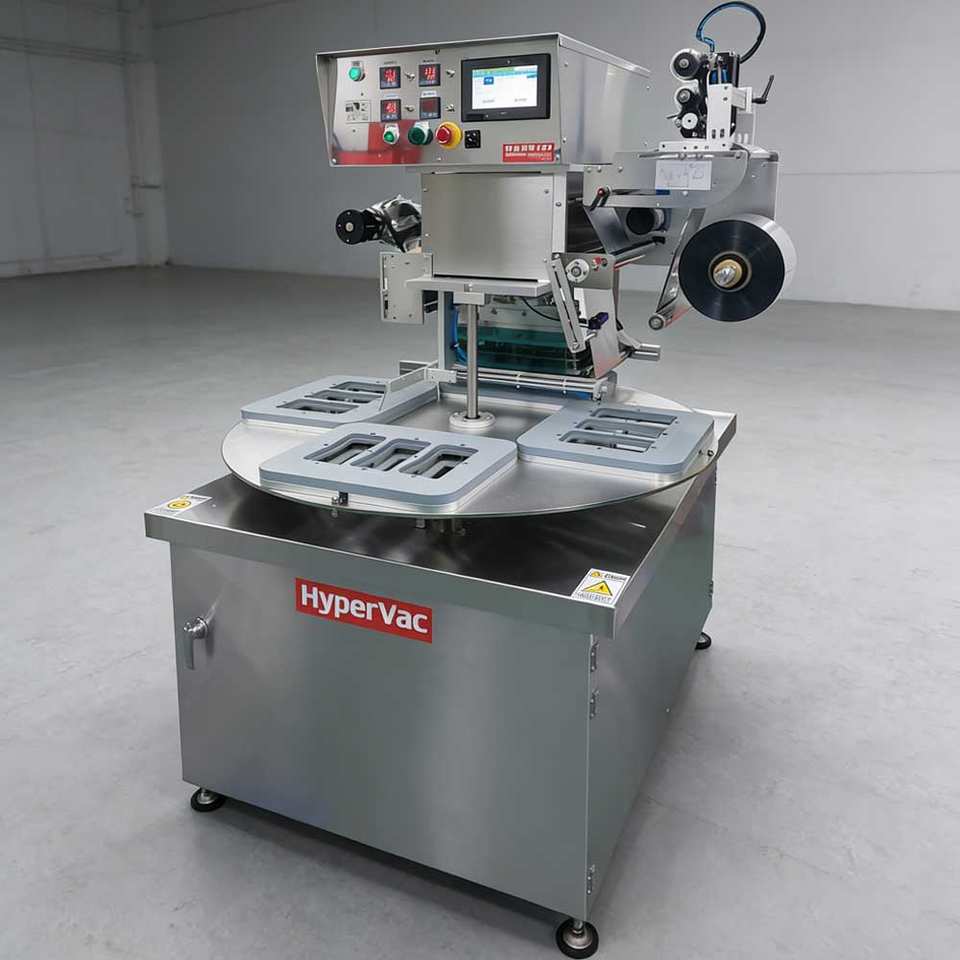 Automatic Rotary Tray Sealing Packaging Machine SUS304 For Fresh Food Ready Meals Tray Sealer With Discharge Function 400kg