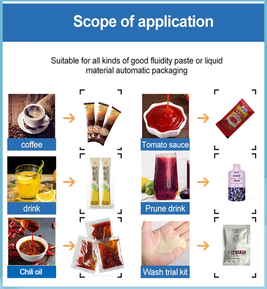 Automatic Small Bag 3 Side Seal Paste Packaging Machine Electric Pneumatic Chili Sauce Liquid Honey Sauces Filling Machine