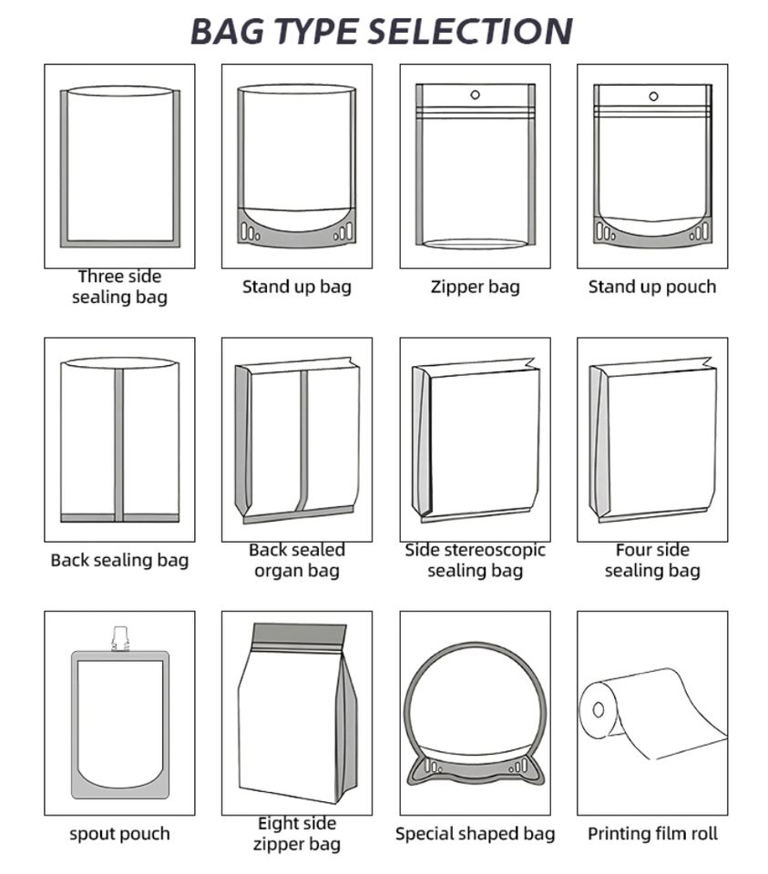 PET film,pure aluminum,aluminum plating and other prefabricated bags