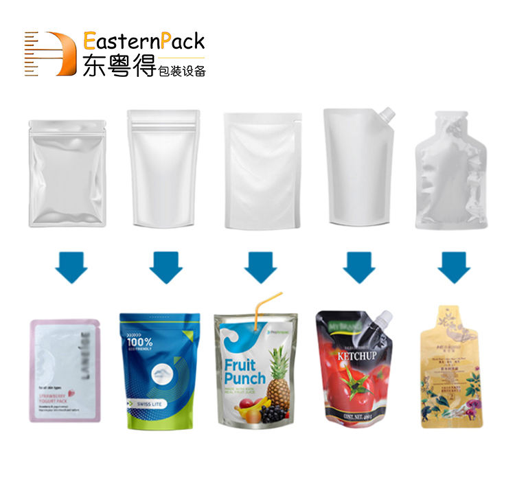 Bags, Stand-up Pouch, gusseted pillow bag, 3 sides sealing bag, 4 side seal bag, Cartons, Cans, Bottles, Barrel, Film, Foil, Belt, Pouch, Casepackaging type