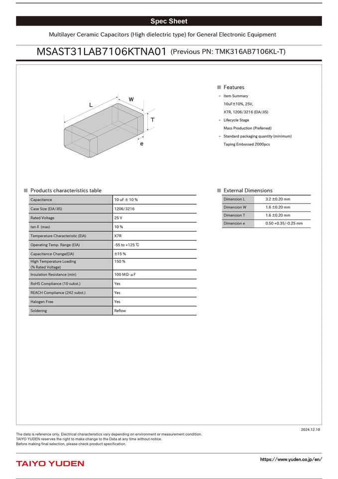 Specification:CERAMIC CAPACITORS SIZE 1206/3216