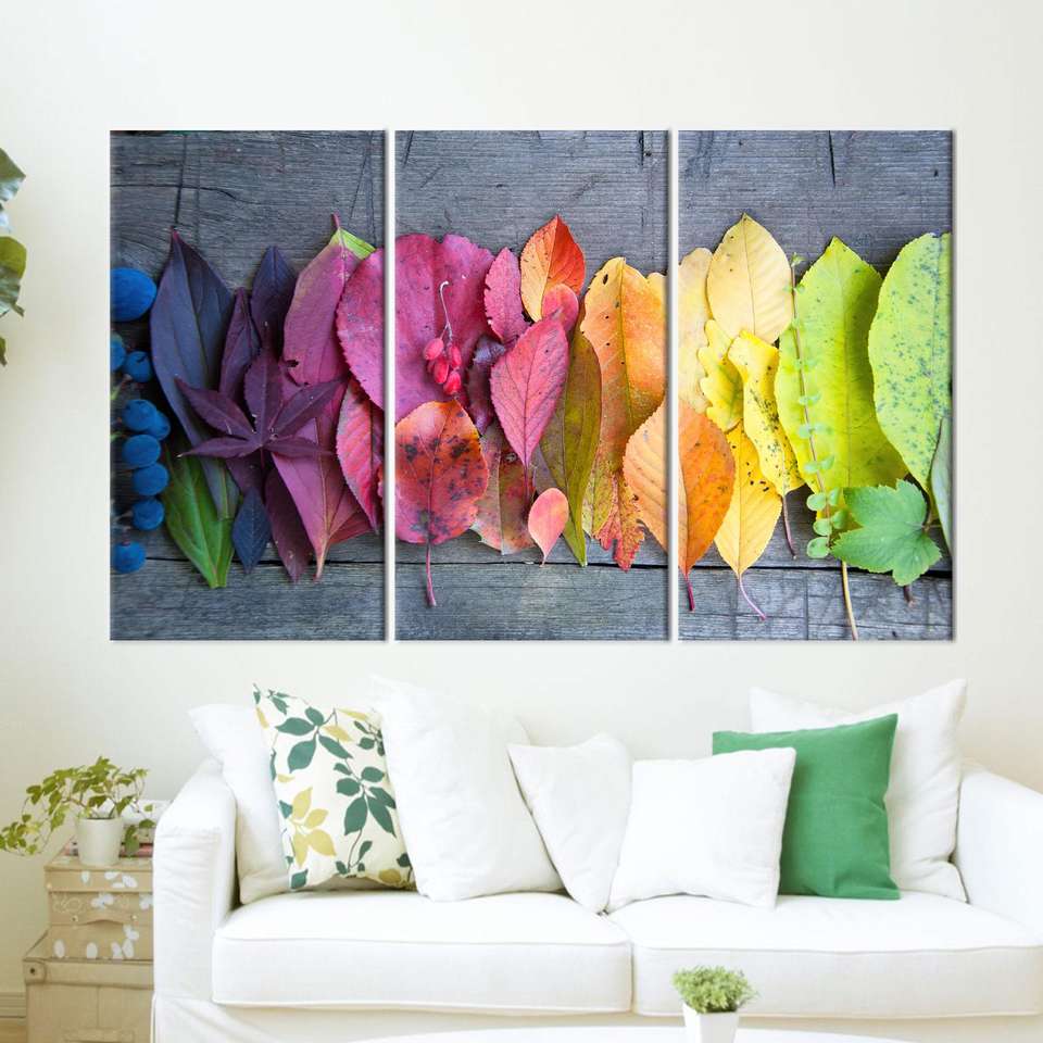 Autumn Canvas Gift: Vibrant Leaf Print Wall Art Decor,3P:Gallery Wrapped