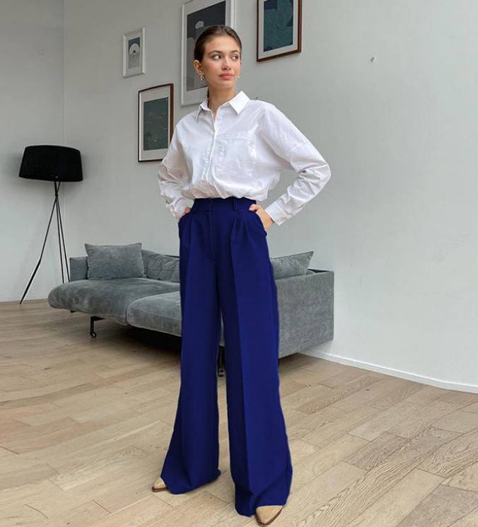 Autumn Casual Trousers for Women Loose Leg Office Lady Suit Pants with Elastic Waist Crocheted Leopard Pattern