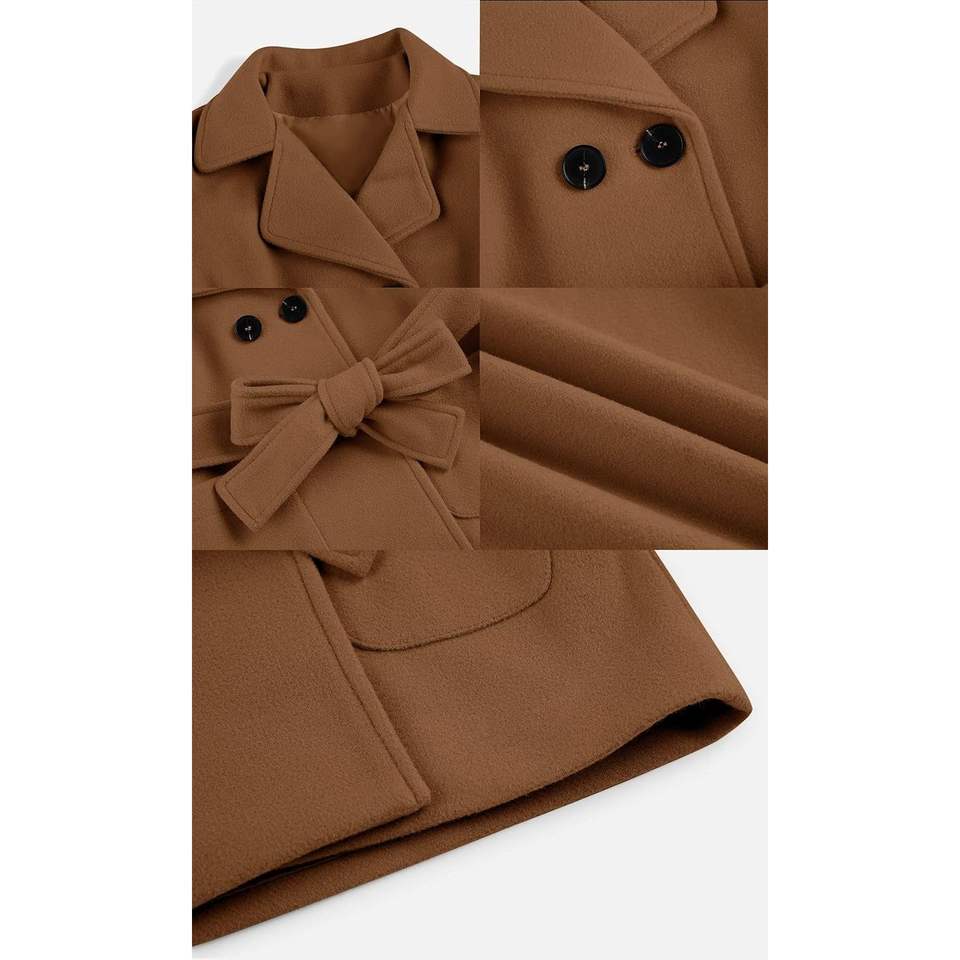 Autumn Classic Wool Blend Double Breasted Trench Coat for Kids Winter Outwear Pea Coat Jacket with Hooded Collar and Belt