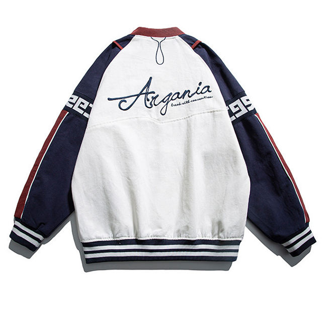 Autumn Color Block Custom Embroidered Baseball Jacket Coat Men Spring Autumn Street Trend Loose Teenager Pilot Jacket