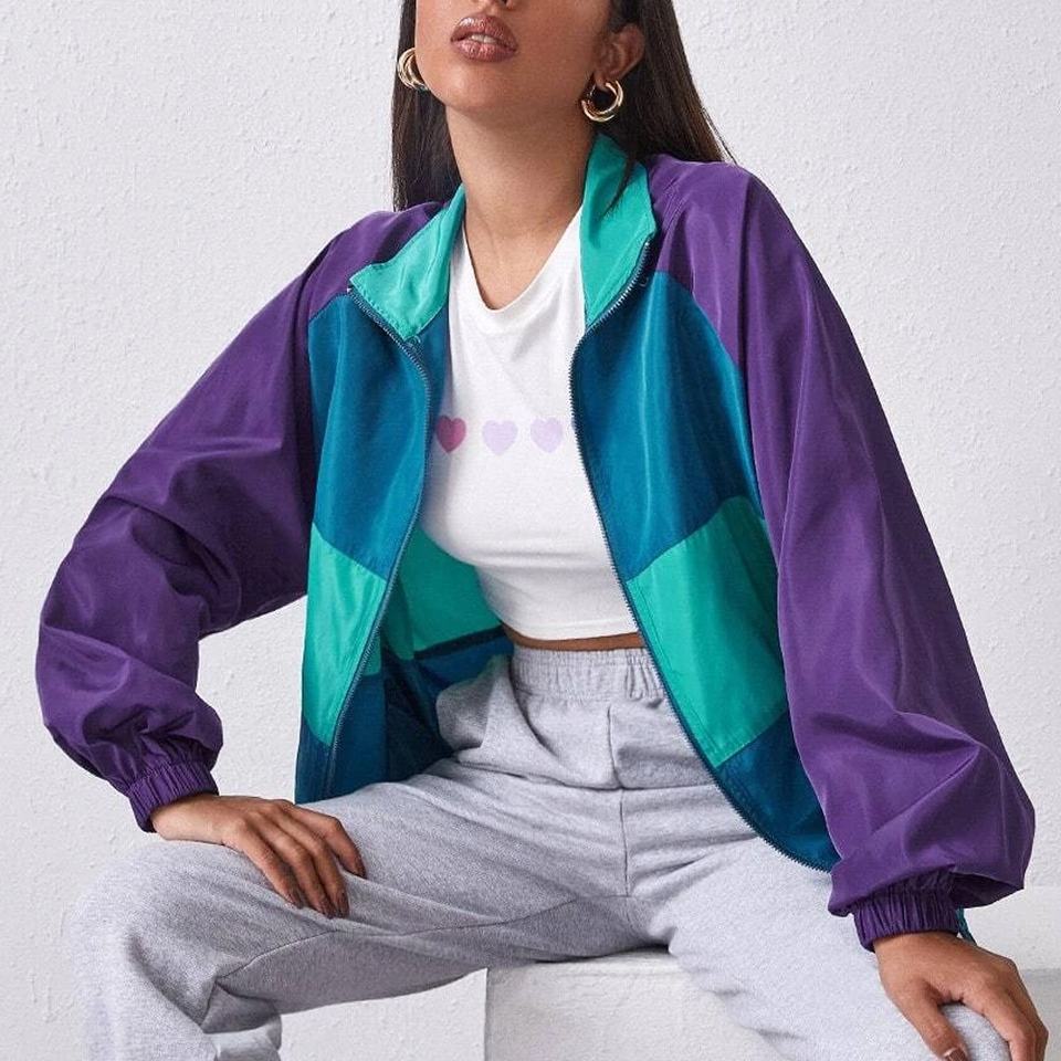 Autumn Color Block Drawstring Windbreaker Jacket for Women Custom Full Zipper Women Vintage Jacket Windbreakers