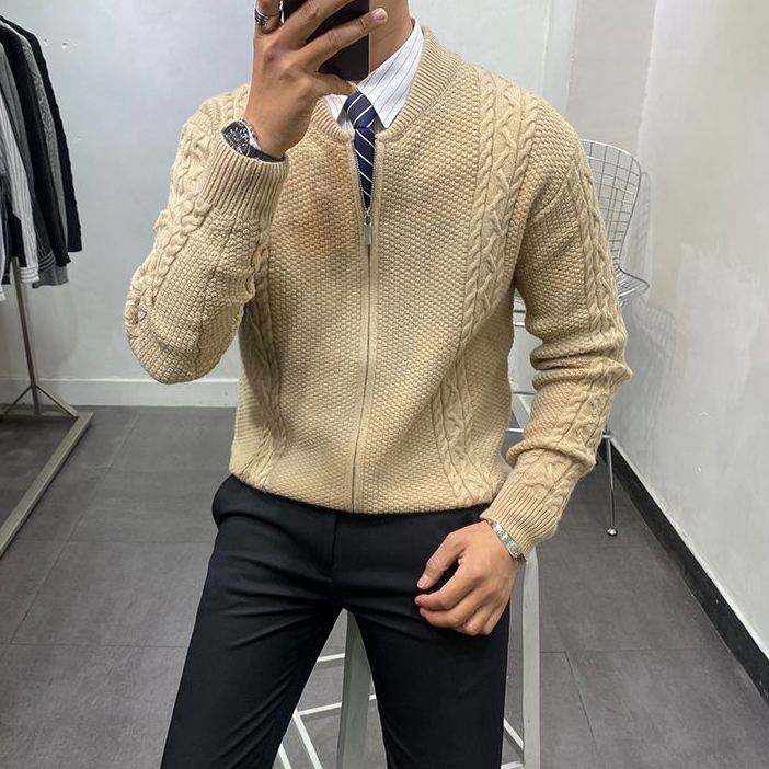 Autumn Fashion Men's Loose Casual Knitted Polyester Cardigan Sweater Long Sleeve Zipper Jacket Crew Neck Button Anti-Shrink