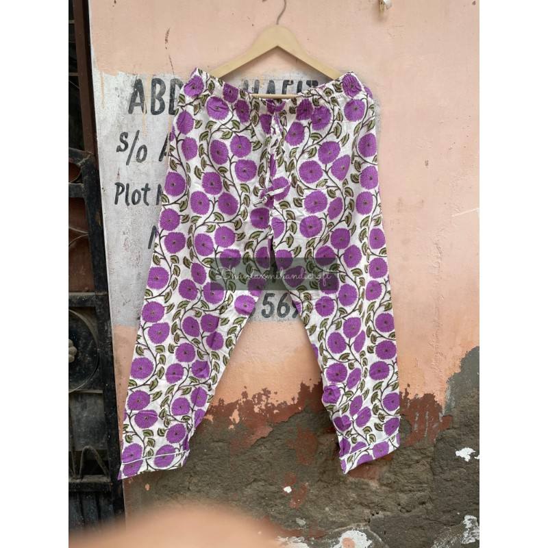 Autumn Floral Boho Hippie Style Indian Hand Stitched Cotton Printed Pyjama Suit Unisex Summer Sleepwear Women Knitted Pyjamas