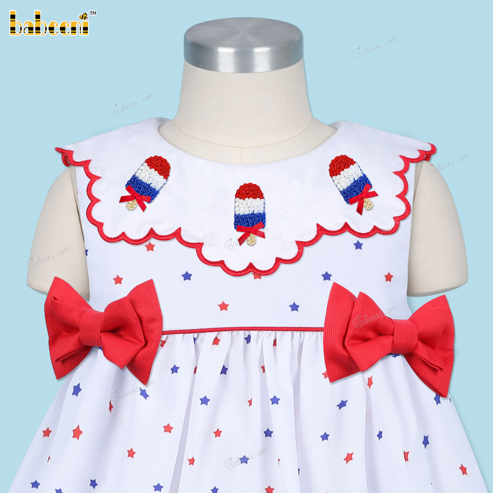 Autumn Girls' Dress in White Ice for Crocheted 100% Cotton OEM ODM Customized Handmade A-Line Short Sleeve-DR3995