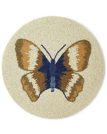 Autumn Inspired Beaded Butterfly Placemat Handmade Embroidery for Drinkware Unique Traditional Decorative Tableware for