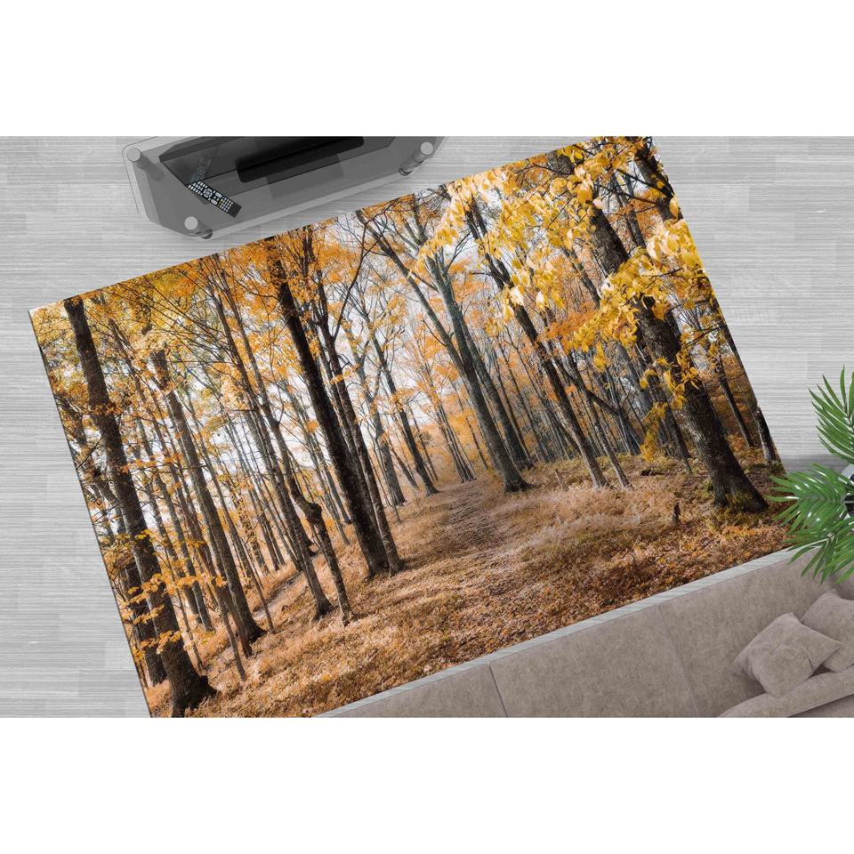 Autumn Landscape Printed Rug: Large, Brown, Custom Farmhouse Decor,Velvet Rug