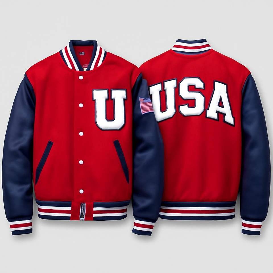 Winter Unisex Custom Logo Formal Wool Leather Varsity College Jackets Long Sleeve Baseball Jacket Plain Dyed Processing Coating