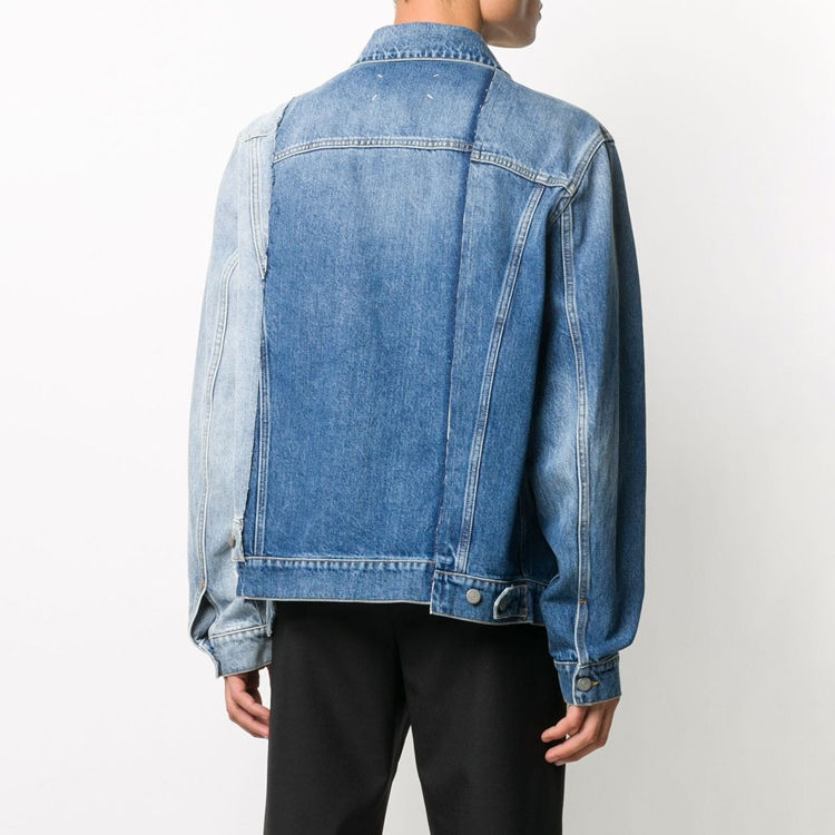 Autumn Men's Custom Two-Tone Street Style Denim Jacket 100% Cotton Breathable Wholesale Washed with Embroidered Logo