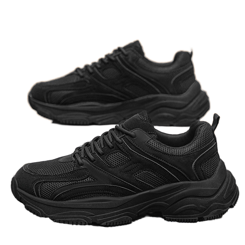 Autumn Men's Lace-up Solid casual shoes Thick Black Sneakers Breathable Mesh Design Sporty Casual shoes Use with EVA Insole