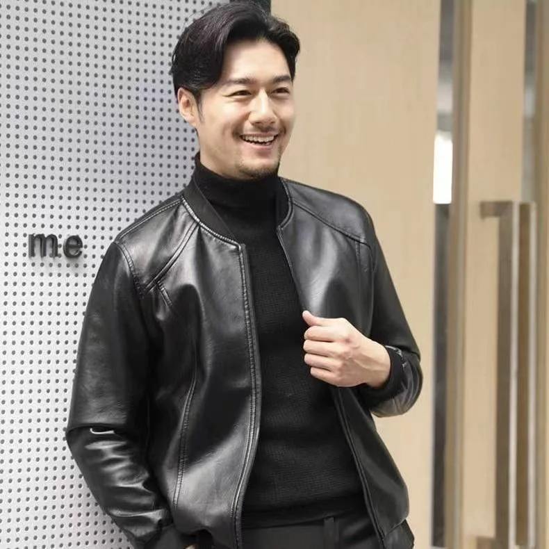 Autumn Men's High Quality Sheep Skin Leather Jacket Casual Baseball Collar Style Fashionable Thin Motorcycle Coat Clothing