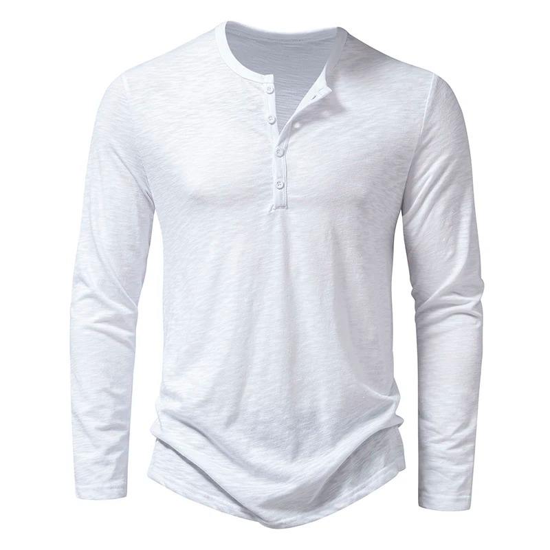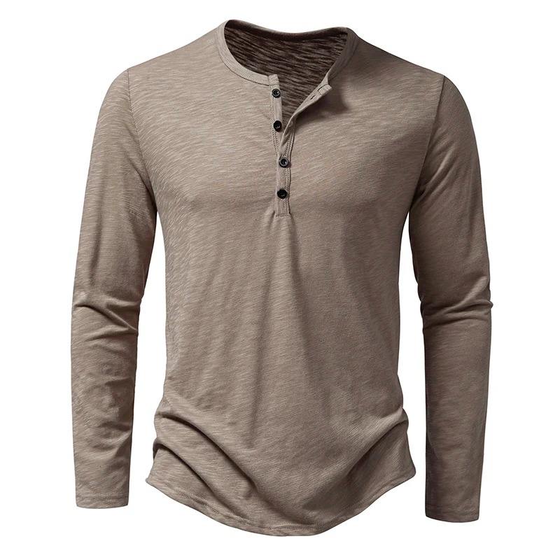 Autumn New High-End Men's Cotton Button Henley Neck T-shirts Fashion Solid Color Long Sleeve T Shirt Casual Button Top Tees