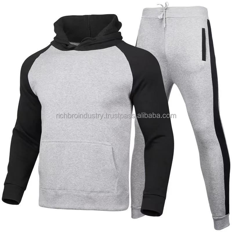 Autumn New Men Hooded Sweatshirt Set Fashion Fleece Tracksuit Man Sports Suit Loose Black Yellow Patchwork Printed Tracksuits
