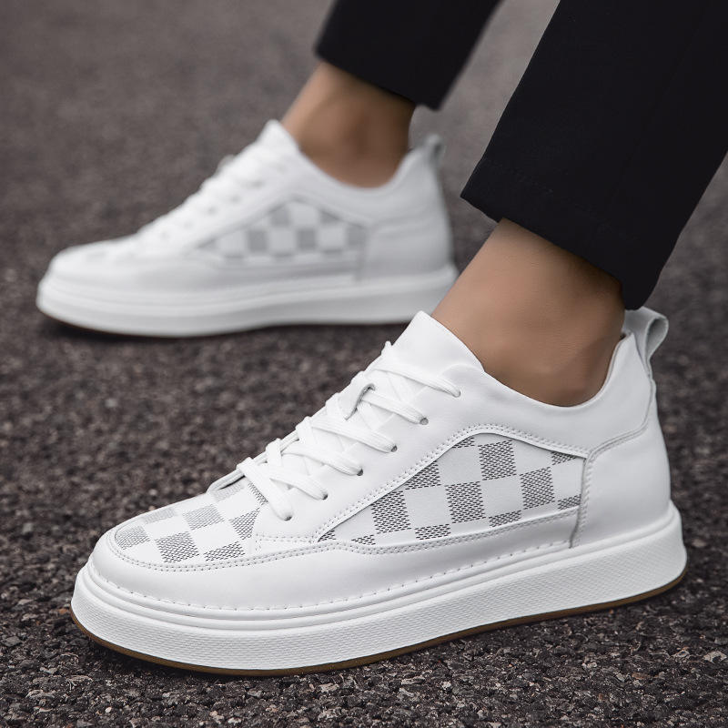 Autumn New Men's Casual Sneakers 8CM Height Increasing Shoes with Thick Sole White Sports Shoes