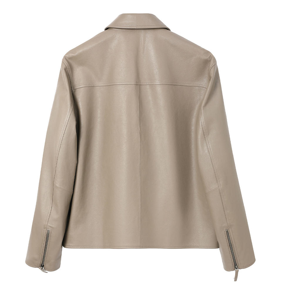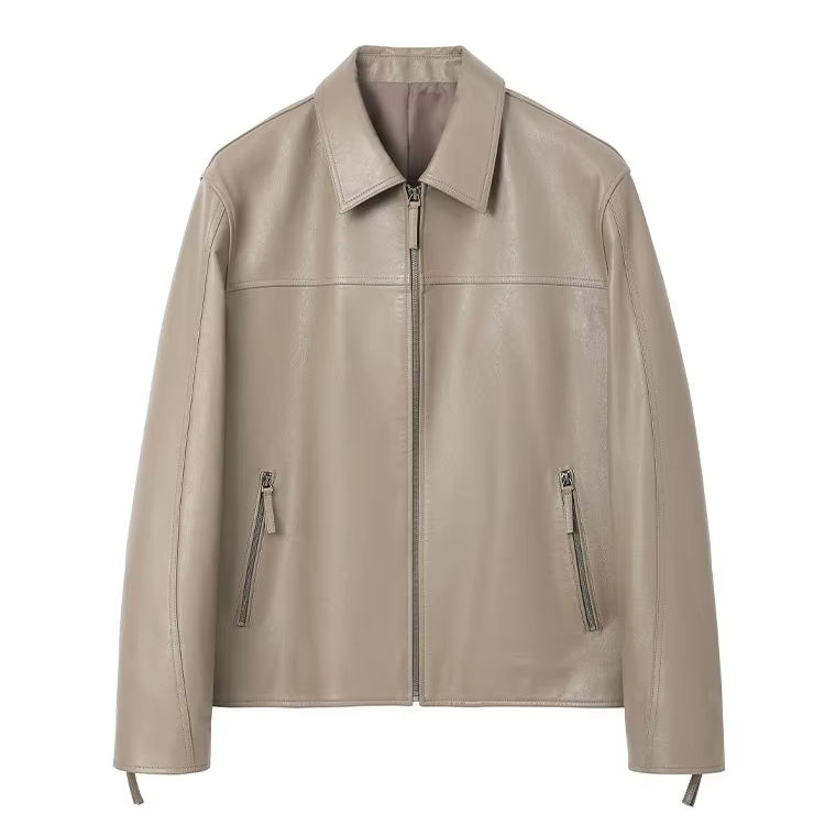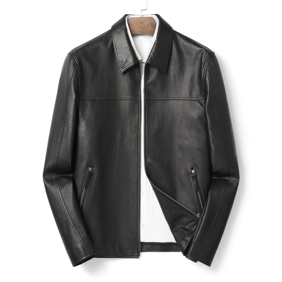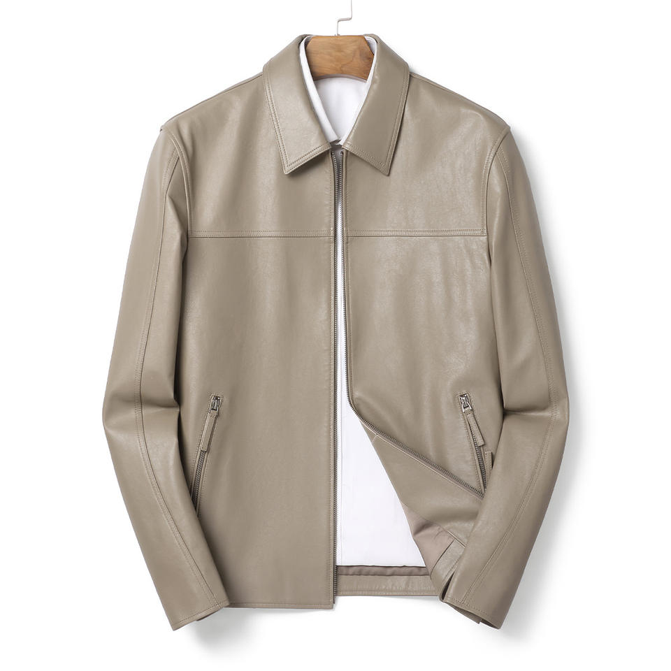 Autumn New Men's Sheep Leather Jacket Real Plant Tanned Micro Wide Short Lapel Coat Casual Style Zipper Closure Long Length