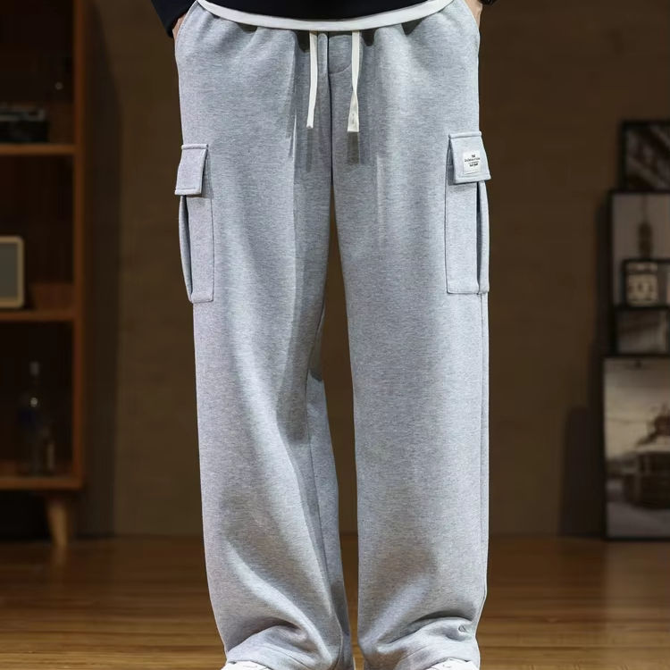 Autumn New Sweatpants Men Multi-Pockets Drawstring Cotton Casual Track Pant Male Loose Trousers Straight Trending