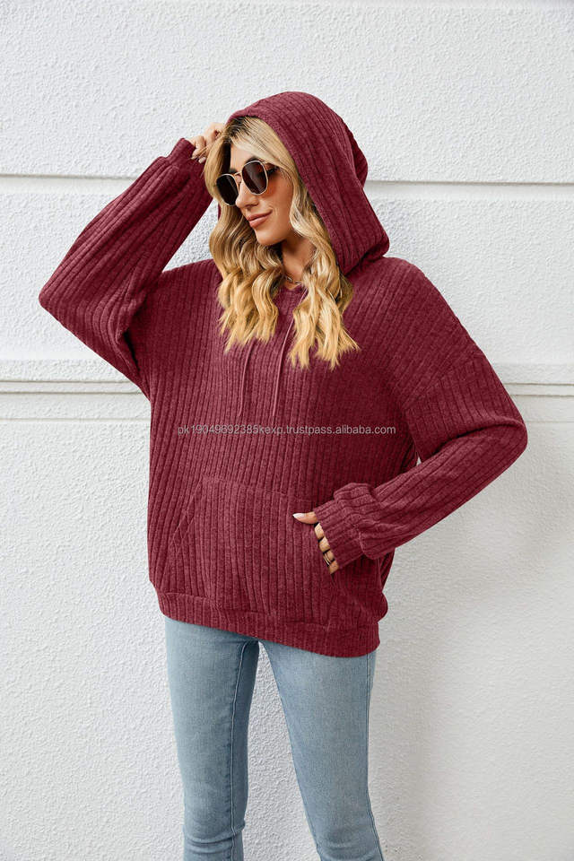 Autumn New Women's Knitwear Hooded Pit Pocket Hoodie Women Pullover Sweatshirt