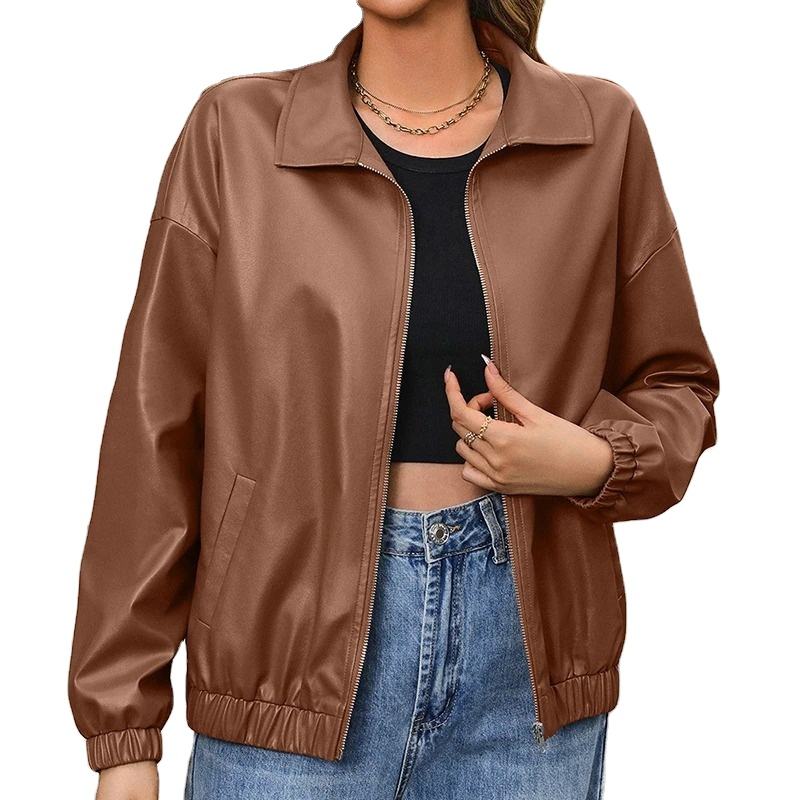 Autumn Original Leather Jacket for Women Vintage Long Sleeve Lapel Zipper Coats for Women Fashion Outerwear