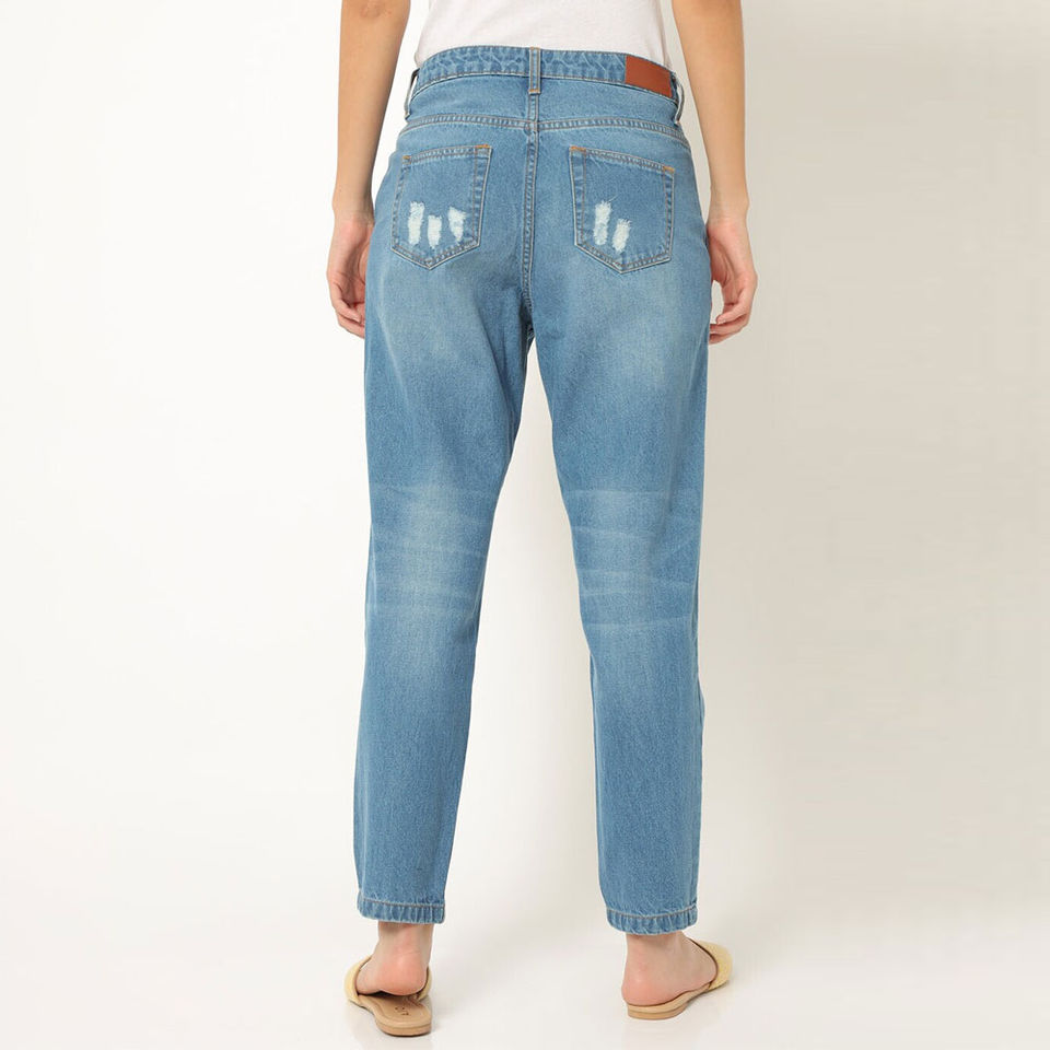 Autumn Season Custom Dark Wash Seam Details Denim Jeans for Women Wholesale Washed Elastic Hem Denim Women Cargo Pockets Pant