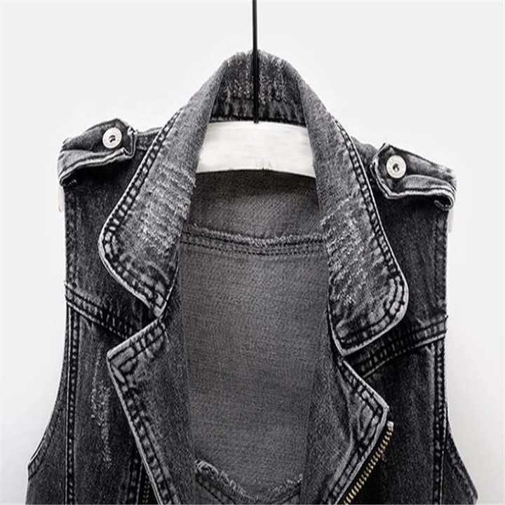 Autumn Spring Women's Denim Waistcoat Fashionable Sleeveless Short Jacket Smoky Gray Plus Size-for Female Wild Tops