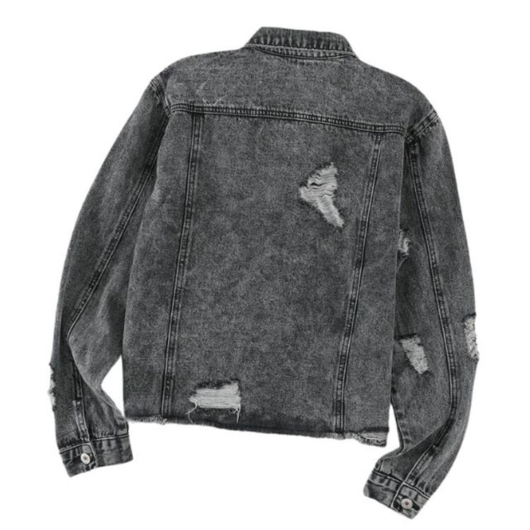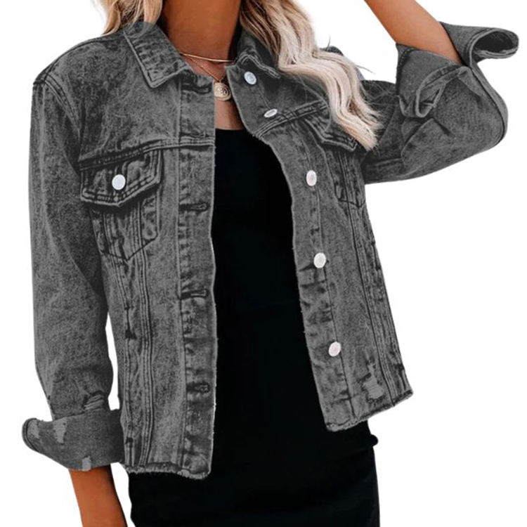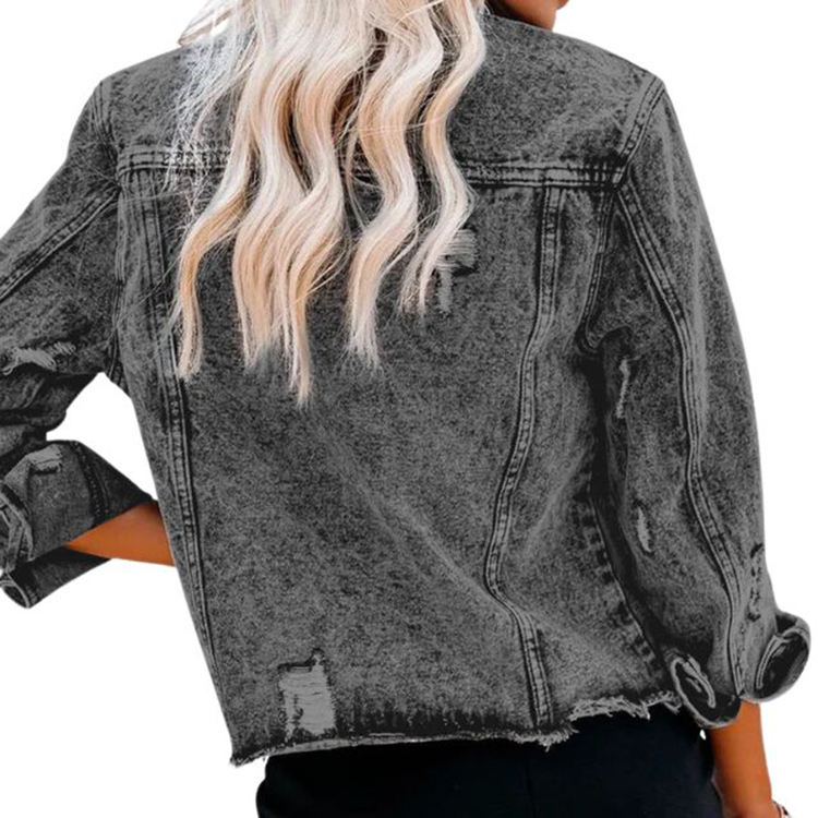 Autumn Vintage High Quality Women Frayed Black Denim Jacket Streetwear Plus Size Loose Short for Jean Jackets